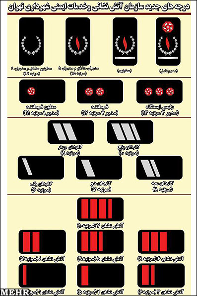 درجه آتش نشانان تهران را در بالا↑ میبینید و درجه آتش نشانان ایران (منهای تهران!) را در پایین↓ مشاهده میکنید!